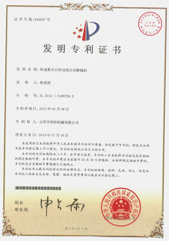 企業組建了“云浮市石材機械裝備工程技術研究開發中心”,并與高校和科研院所密切合作,致力于光機電一體化產品的研發、生產、銷售和服務。主要產品有框架鋸、全自動連續磨拋機、橋式自動切割機、全自動仿形石線機、數控金剛石繩鋸、裁切機等。產品具有自動化程度高、加工精度高和生產效率高等特點。產品除國內銷售外,還出口到歐美、東南亞、韓國、印度、中東、非洲、俄羅斯、澳大利亞等國家和地區,深受用戶好評!皹蚴阶詣忧懈顧C”被認定為廣東省高新技術產品,擁有發明專利1項、實用新型專利1項。